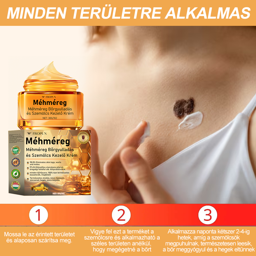 FROPUNâą MĂ©hmĂ©reg BĆrgyulladĂĄs Ă©s Szemölcs KezelĆ KrĂ©m felhasznĂĄlja a mĂ©h mĂ©reg erĆs tulajdonsĂĄgait, hogy hatĂ©konyan kezelje a kĂŒlönfĂ©le bĆrproblĂ©mĂĄkat, beleĂ©rtve a bĆrjelölĂ©seket, anyajegyeket, szemölcsöket Ă©s foltokat. Ez a fejlett formula aktĂv összetevĆket tartalmaz, amelyeket a mĂ©h mĂ©regbĆl nyernek ki, Ă©s kĂ©pesek felbontani, valamint gyengĂ©den eltĂĄvolĂtani a nem kĂvĂĄnt növekedĂ©seket.