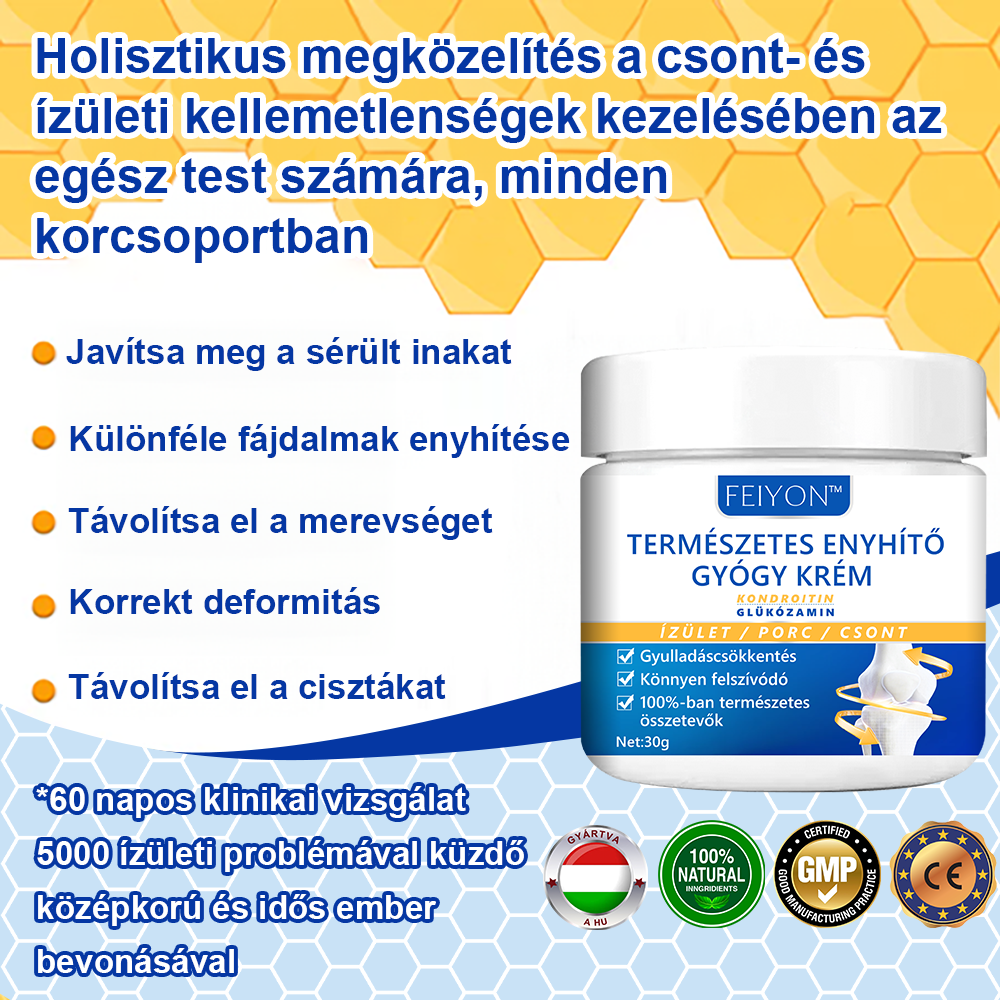 FEIYON™ Természetes Enyhítő Gyógy Krém híres hatékonyságáról ismert, amely széles spektrumú ortopédiai problémák kezelésére szolgál.