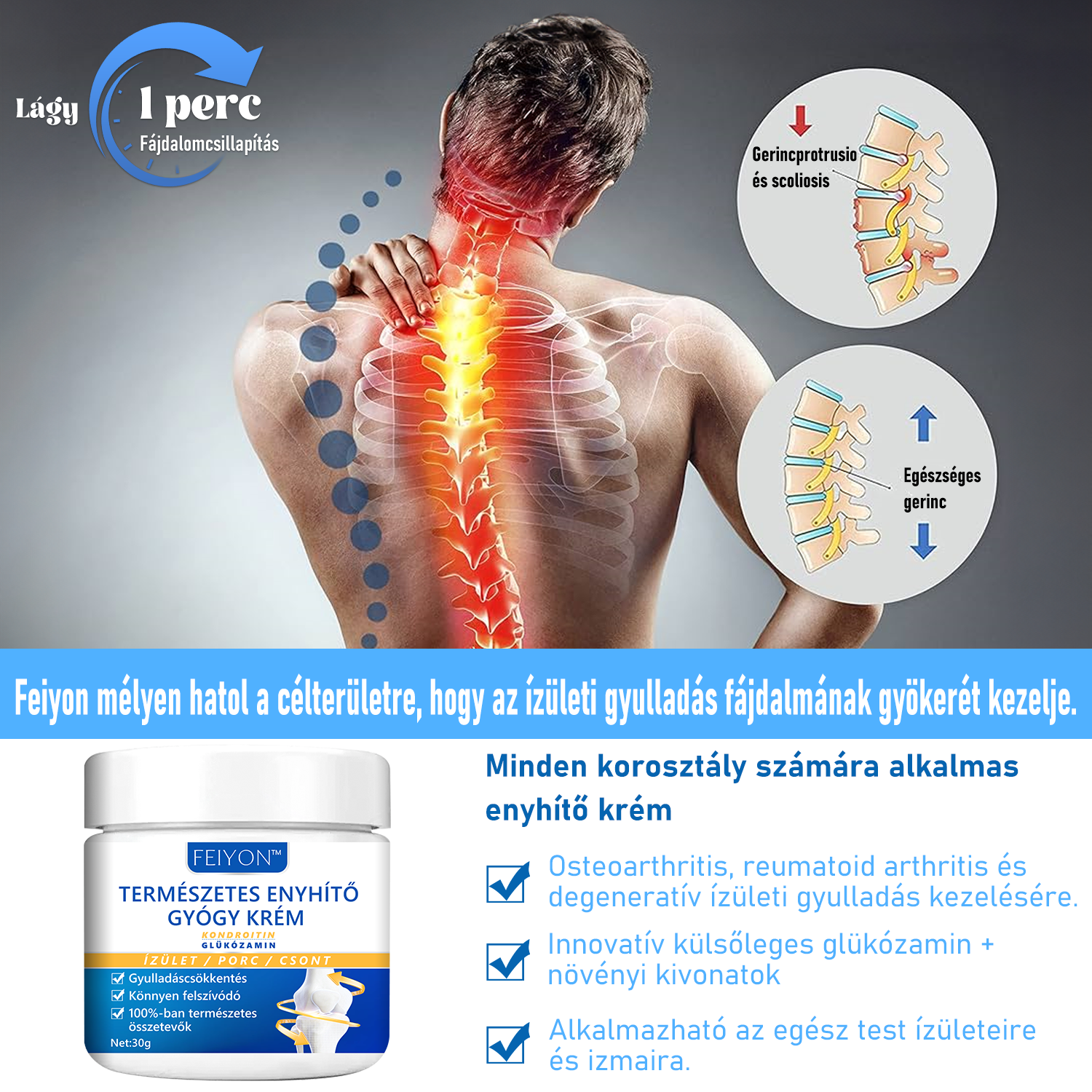 Ortopéd sebész szakemberként ajánlom az FEIYON™ Természetes Enyhítő Gyógy Krémet mindazoknak, akik ízületi és csontbetegségekben, mint például az osteoarthritis, rheumatoid arthritis és egyéb gyulladásos betegségekben szenvednek. Ez a krém olyan aktív összetevőket tartalmaz, mint a méhméreg szűrt anyaga, glükózamin és kondroitin. Képes csökkenteni a gyulladást, táplálni az ízületeket és javítani az ízületek mobilitását. Segít a porc és csontszövet újjáépítésében és helyreállításában, csökkentve ezzel a fájdalmat és merevséget. Segít az ízületekben és a csontok közötti káros kristályok eltávolításában is, visszaállítva a normális ízületi és csont szerkezetet, csökkentve a fájdalmat, gyulladást és javítva az ízületi funkciót.