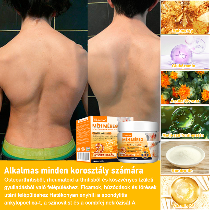 𝐈𝐳𝐮̈𝐥𝐞𝐭𝐢𝐕𝐢𝐭𝐚𝐥™ Méh Méreg Izületi ReGeneráló Krém híres hatékonyságáról ismert, amely széles spektrumú ortopédiai problémák kezelésére szolgál.