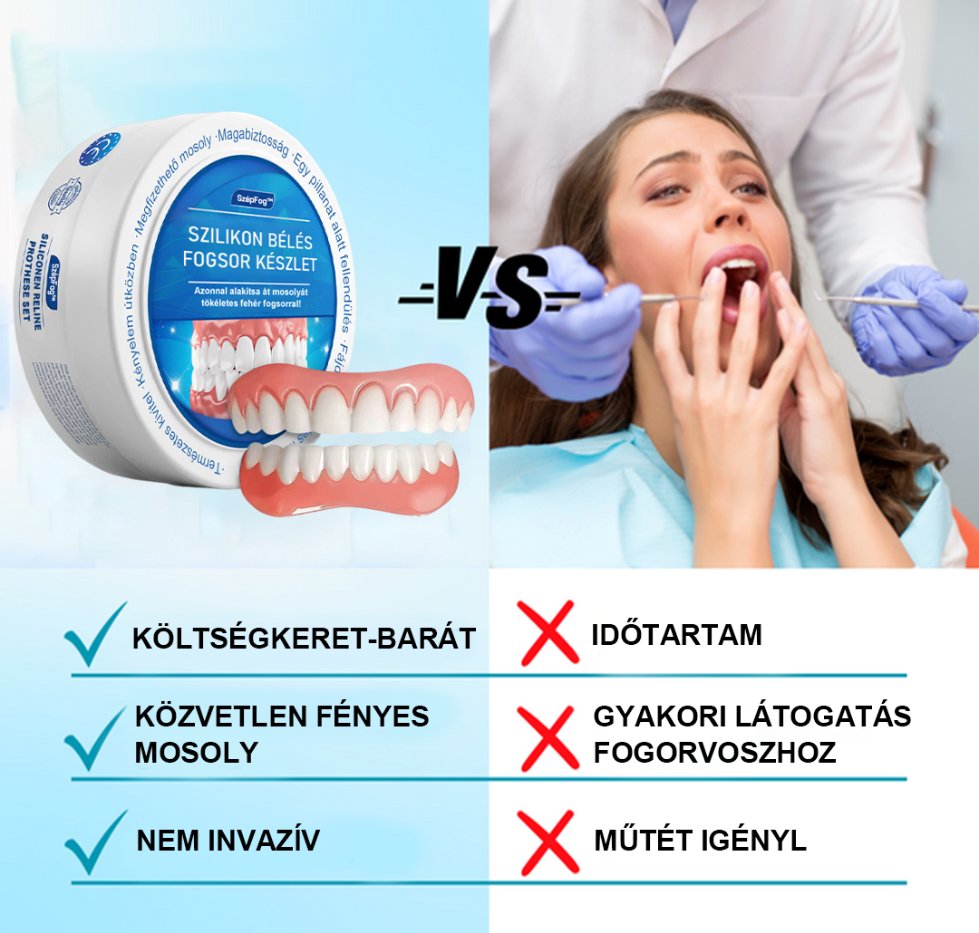 Néha érzi magát bizonytalannak a mosolya vagy a ferde foga miatt? Nincs oka drága kezelésekre menni a fogorvoshoz! A SzépFog™💎 Szilikon műfogsorbetét készlet egy gazdaságos megoldást kínál a tökéletes mosolyhoz.